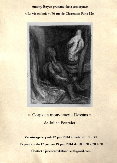 Dans la continuité de ma recherche sur le thème du corps et de la primauté accordée à l’imagination et à l’expression de l’inconscient, cette exposition, intitulée Corps en mouvement réunit une vingtaine de dessins pour la plupart réalisés au fusain (quelques uns à l’encre).