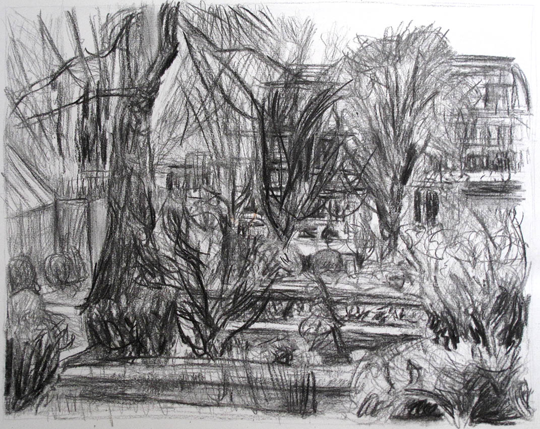 Jardin de Bercy, fusain sur papier, 27×35 cm, 2016